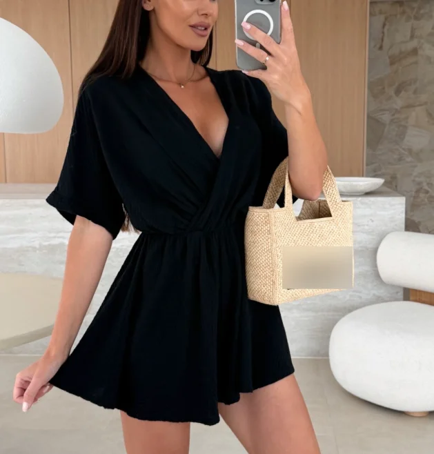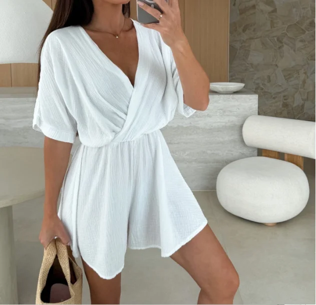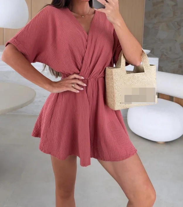 Jumpsuit Short Woman 2025 Sexy Elegant Summer V-Neck Fashion Casual Waist Cinched Solid Color Jumpsuit for Women Womens Clothing
