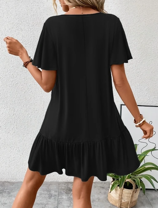 Women's fashionable casual round neck short sleeved solid color mid waist dress for spring and summer 2025 new women's clothing
