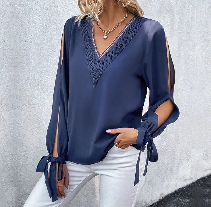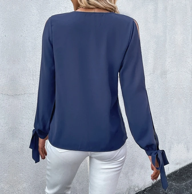 Women's long sleeved top with hollowed out straps lining for 2025 autumn and winter new fashionable casual women's clothing